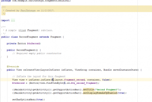 Buatlah java class baru FirstFragment.Java dan isikan kode seperti dibawah :