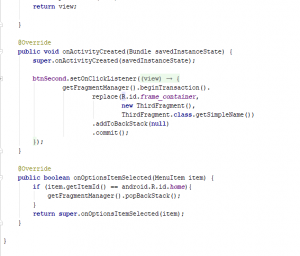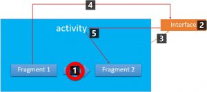 - Pada activity, method interface yang telah diimplementasikan dapat direferensikan ke fragment 2 dan melakukan perubahan pada sesuai method yang diberikan.