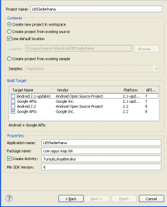 - Buat Projectnya, ikuti inputan seperti dibawah ini.