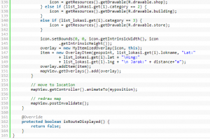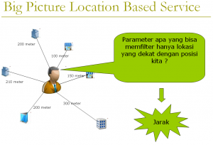Salah satu yang disyaratkan dalam aplikasi LBS adalah filtering jarak. Sekarang mari kita coba buat filtering atau pembatasan lokasi yang muncul adalah lokasi yang jaraknya kirang dari 1000m.