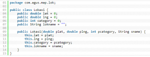 6.Sekarang Mari kita buat class Lokasi.javasebagai template object untuk menyimpan data