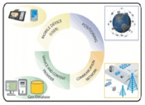 Komponen Positioning (Penunjuk Posisi/Lokasi), Setiap layanan yang diberikan oleh penyedia layanan biasanya akan berdasarkan pada posisi pengguna yang meminta layanan tersebut. Oleh karena itu diperlukan komponen yang berfungsi sebagai pengolah/pemroses yang akan menentukan posisi pengguna layanan saat itu. Posisi pengguna tersebut bisa didapatkan melalui jaringan komunikasi mobile atau juga menggunakanGlobal Positioning System (GPS).