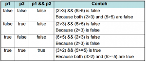 Operator AND (&&) bernilai true jika kedua kondisi operand-nya true, Jika salah satu operand-nya false, maka AND akan bernilai false