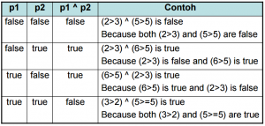 Operator XOR (^) bernilai true jika kedua kondisi operand-nya bernilai berbeda, Jika kedua operand-nya bernilai sama, maka XOR akan bernilai false