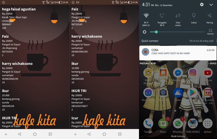 • Firebase Cloud Messaging: adalah layanan yang diberikan Firebase untuk menggantikan Google Cloud Messaging.