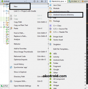- Kedua kita akan membuat folder rawterlebih dahulu ,pada project Android Studio ,kalian bisa klik kanan pada folder app ,lalu pilih New > Android resource directory.