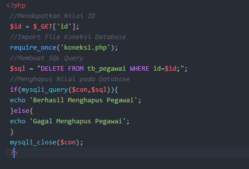 6. Berikut ini adalah perintah untuk menghapus data dari database.