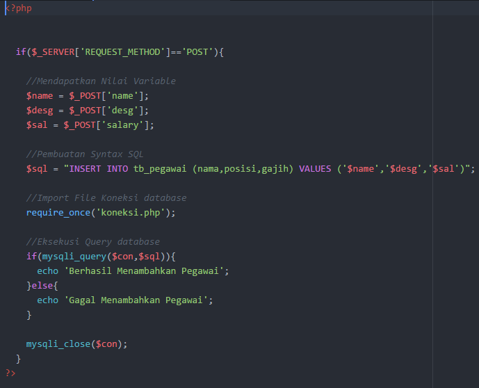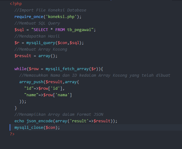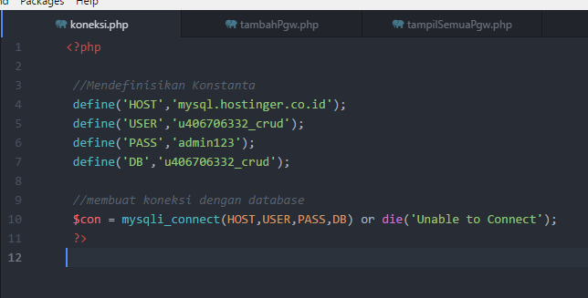 2. Membuat koneksi.php untuk mengkonksikan antara database dengan php WebService.