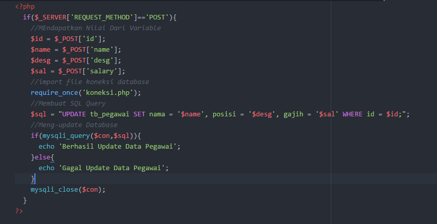 5. Berikut ini adalah perintah untuk update data dari data yang sebelumnya kita buat.
